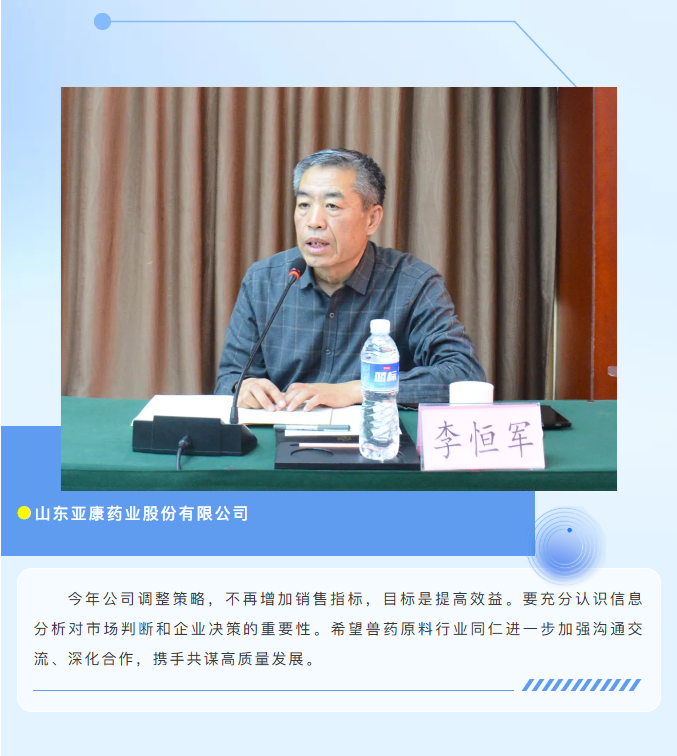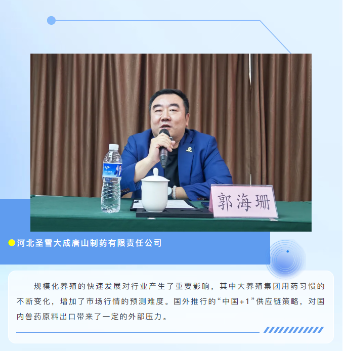 兽药原料药供应渠道闭门会促进了同品类交流沟通和信息共享,拉近了生产企业与经销商之间的距离,增加了中上游供应链的合作机会。与会代表普遍认为,行业可进一步加强沟通协作、共谋发展,理性应对市场变化,避免无序竞争与过度内卷,共同维护健康有序的市场生态,助力行业持续健康发展。