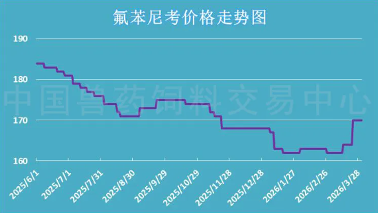 周二,氟苯尼考市场均价为170元/千克,本月每吨涨8000元,结束过去一年以来的弱势震荡,从氟苯尼考走势图来看,产品向上撬动明显。目前主流厂家发货持续收紧,市场时有厂家停报消息传出,叠加价格处于历史低位的氟苯尼考,后市仍存进一步拉涨可能。