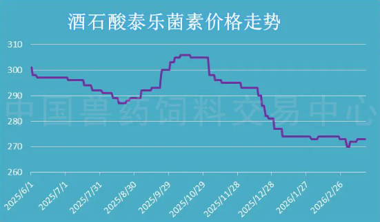 3月,酒石酸泰乐菌素及相关品类替米考星结束前期冲高回落态势,逐步企稳。截至31日,酒石酸泰乐菌素和替米考星市场均价分别在272元/千克和354元/千克。据了解,目前主流厂家排队等货、报价延迟等现象增多,预计短期内价格将维持震荡运行。
