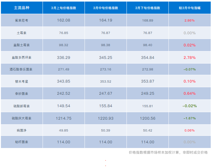 2、应注意:当前兽药原料药市场外部因素影响依旧,但市场趋于理性,由成本推动叠加情绪共振带动的普涨行情已暂告一段落。油价持续高位,进一步推高基本能源和化工成本;上游主流厂家继续维持停报停签策略,挺价意愿较强,对价格底部形成较强支撑。中东战事持续,中间层面惜售心理不减,然下游追高热情消减,市场惜售与谨慎并存。市场正从前期的情绪驱动,重新交棒给供需基本面主导。建议结合自身库存周期与终端订单情况,优先保障刚需补货,避免因短期成本扰动而过度囤货;不要只看停报消息,而是重点关注下游需求真实带动,回归到按需采购的基本盘。