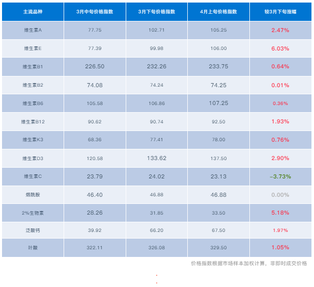 厂家 停报传闻, 出口 向好 (成交113-120元/kg) ,本期市场价格指数维稳运行。维生素类
