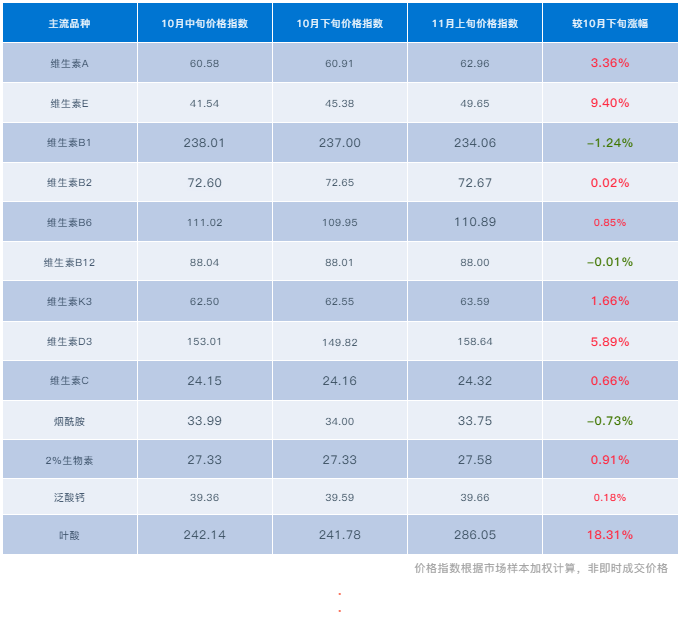 烟酰胺:刚需为主,交投一般,成交区间窄幅震荡 (市场报价32-38元/kg),本期市场价格指数弱震运行。